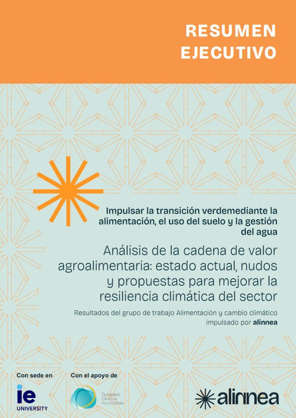Este Resumen Ejecutivo presenta de forma breve los principales contenidos del documento ‘Análisis de la cadena de valor agroalimentaria: estado actual, nudos y propuestas para mejorar la resiliencia climática del sector’, el informe que recopila los resultados del grupo de expertos impulsado por alinnea en 2024 para profundizar en los principales desafíos climáticos del sector agroalimentario.