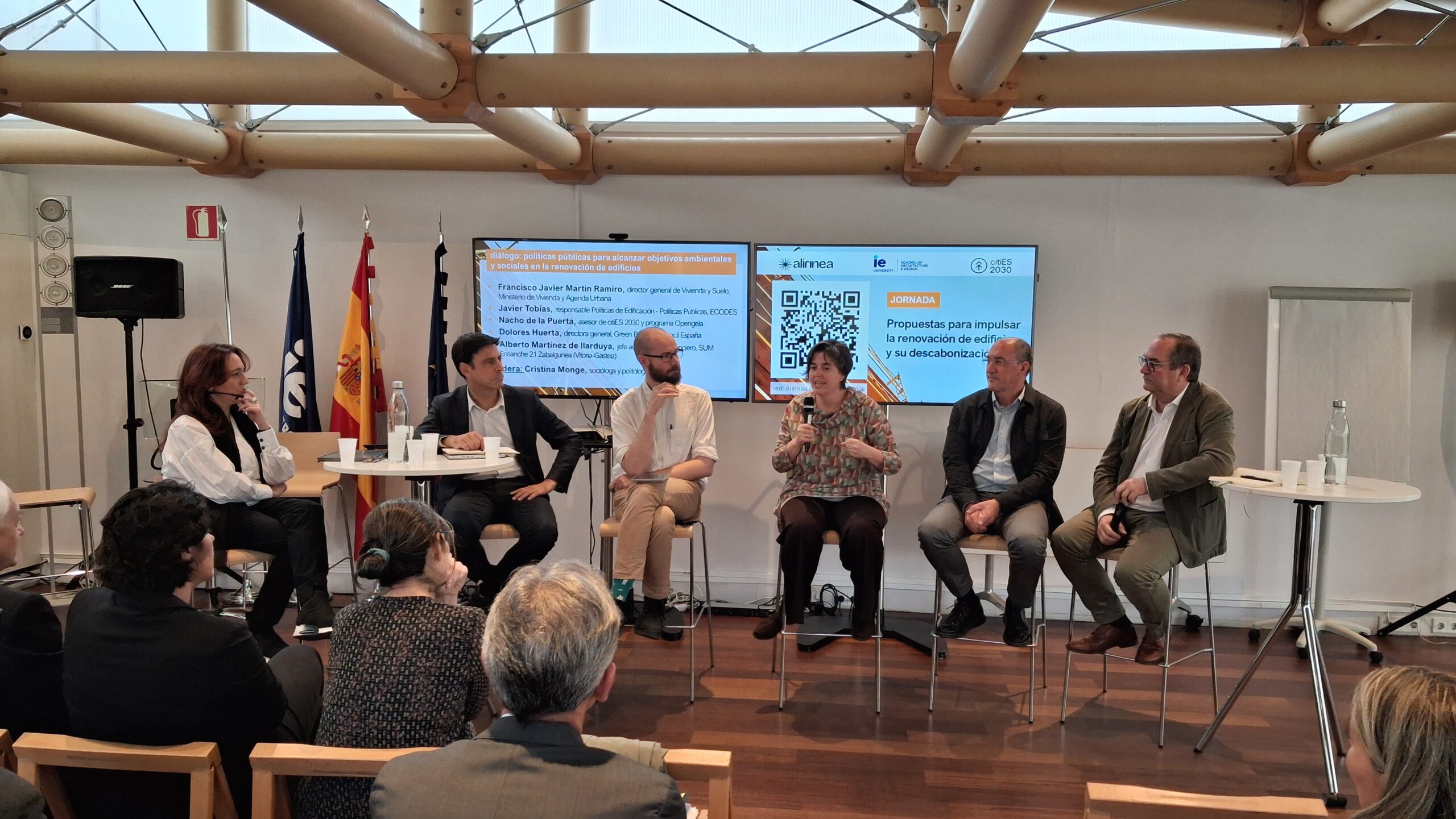 To close the event, a panel brought together public and social sector representatives, including Francisco Javier Martín Ramiro, Director General of Housing and Land at the Ministry of Housing and Urban Agenda; Javier Tobías, Head of Building and Public Policy at ECODES; Ignacio de la Puerta, Advisor to citiES2030 and the Opengela program; Dolores Huerta, Director General of the Green Building Council Spain; and Alberto Martínez de Ilarduya, CFO of SUM Ensanche 21 Zabalgunea (Vitoria-Gasteiz). The session was moderated by Cristina Monge, a sociologist and political scientist specializing in ecological transition and civic participation.